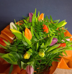 Laat onze bloemisten een boeket samenstellen. Zij werken met bloemen die lang blijven staan en passen bij het seizoen.